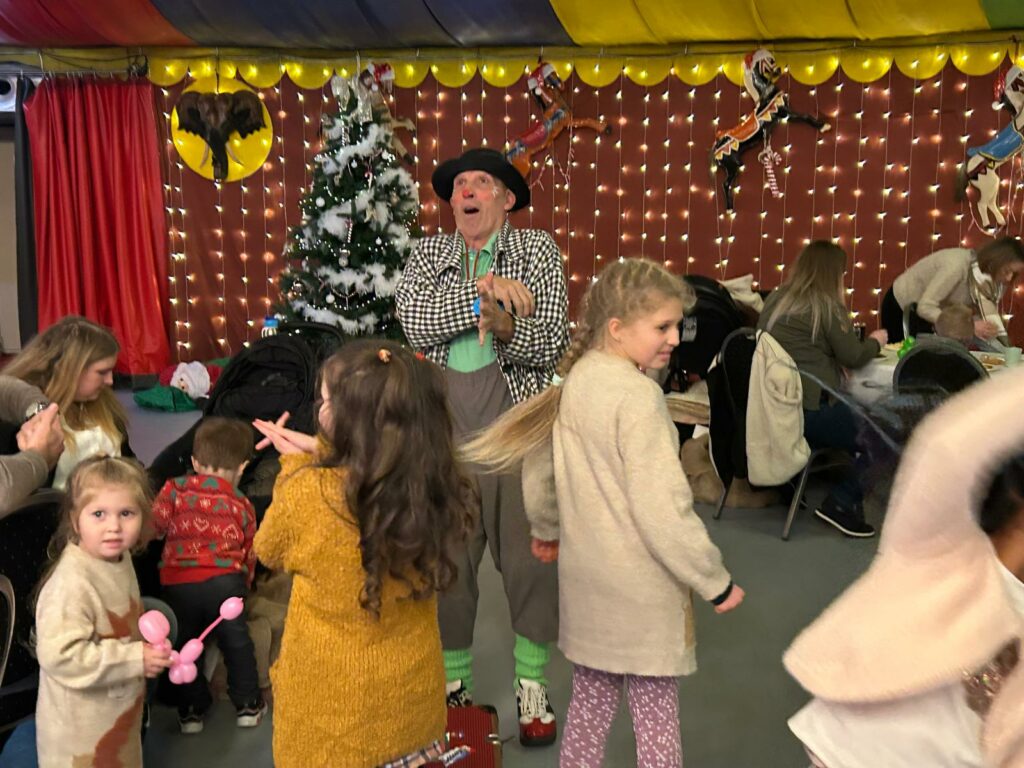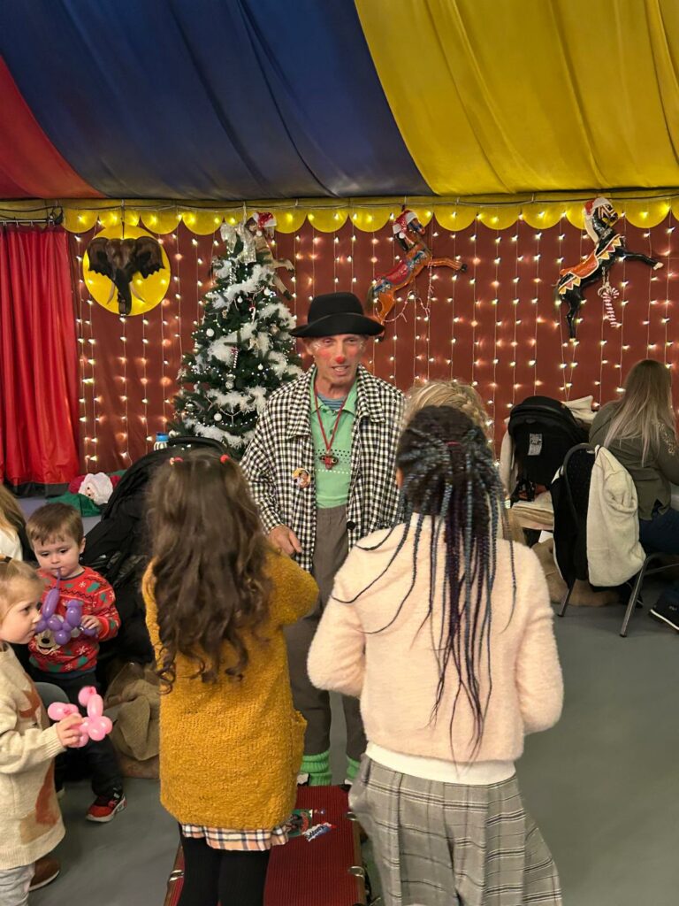 Während der Nikolaus die einzelnen Kinder zu sich bat, verkürzte der Clown Pepe den wartenden Kindern die Zeit mit allerlei Tricks und Luftballon Figuren.