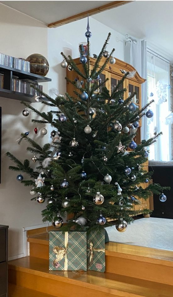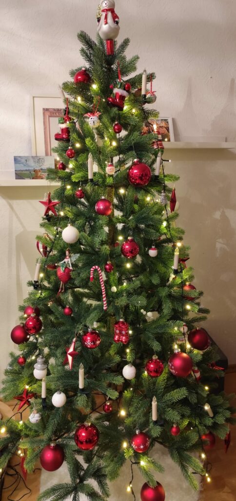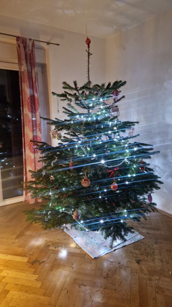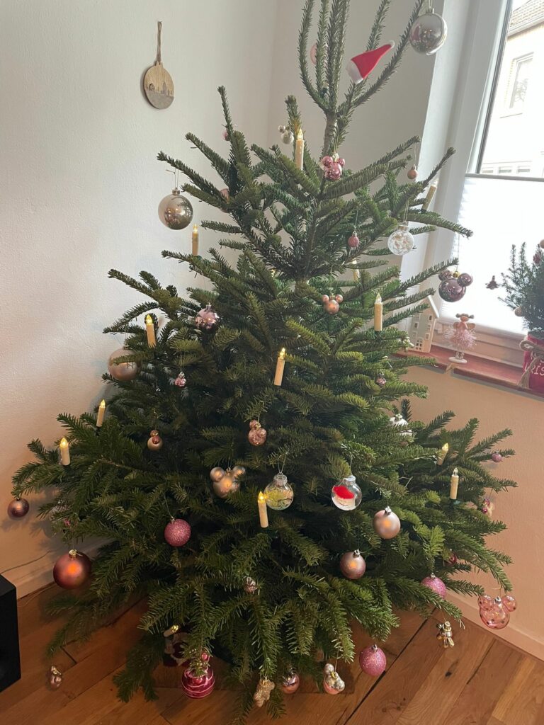 Wir haben bereits Bilder von den ersten geschmückten Tannenbäumen von unseren Familien bekommen.