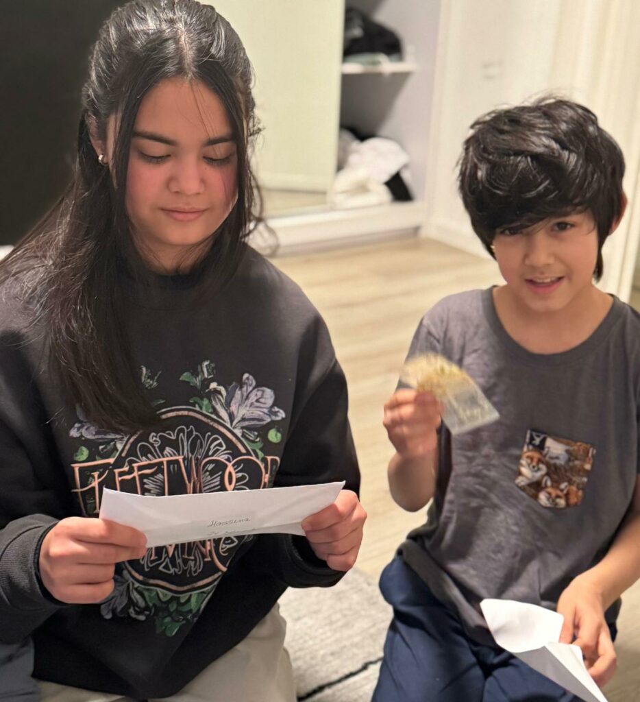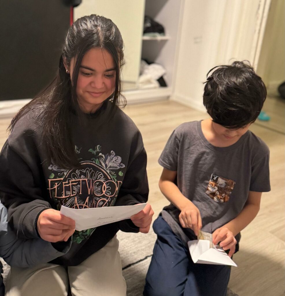 Die Geschwister Hassina, Anisa + Jalal kamen mit ihren Zeugnissen und zeigten stolz ihre Schulnoten. Es gab insgesamt 4 x sehr gut.