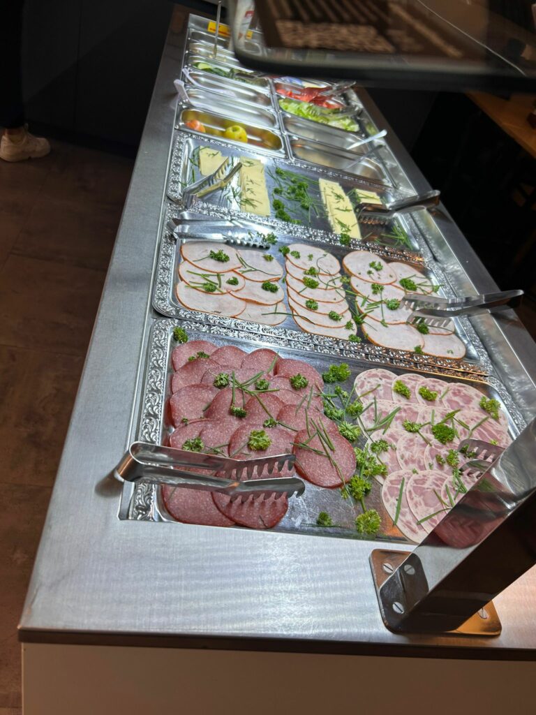 Das Frühstücksbuffet im Hostel war sehr üppig und lecker.